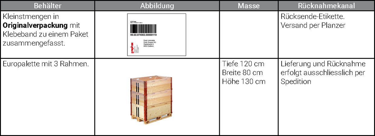 Helfen Sie mit, die Anzahl an Abholungen zu reduzieren und sammeln Sie die einzelnen Tonerflaschen, bis Sie mehrere zur Abholung bereitstellen können. Danke!